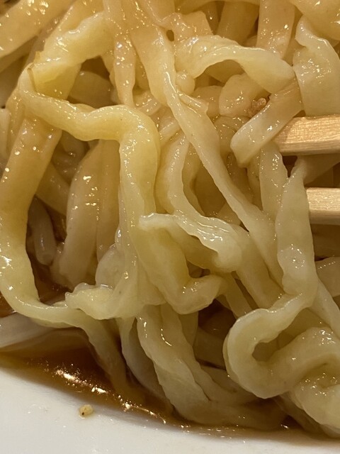 麺はうどんライクな中太麺、手打ち麺で佐野系のビロビロ麺は、オイラ好み、どストライクです。