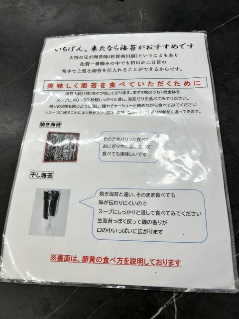 券売機で「いちげん。ラーメン」と「おにぎり」を購入し、店内で少し待機。テーブルのレイアウトが前回と変わっていました。店主さんをはじめスタッフの皆さんも元気いっぱいで、店内は活気があります。