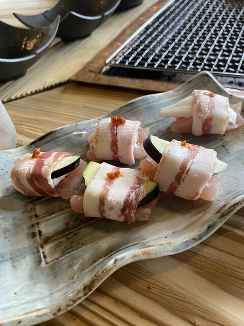 ささみ 野菜とささみを豚肉で巻いてます。これはどちらでも