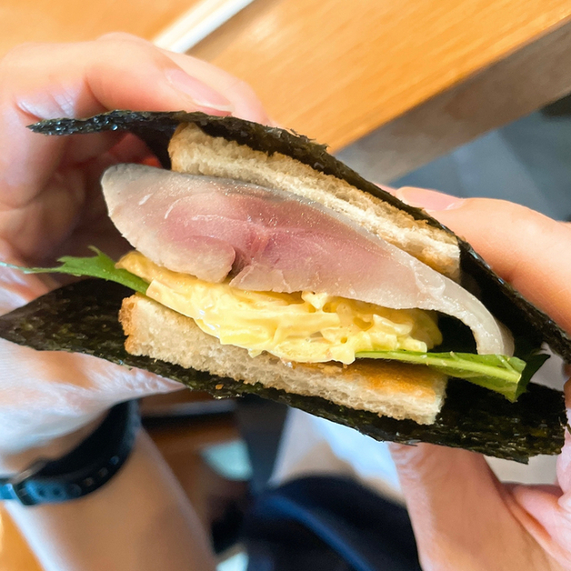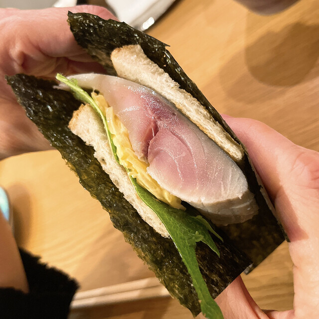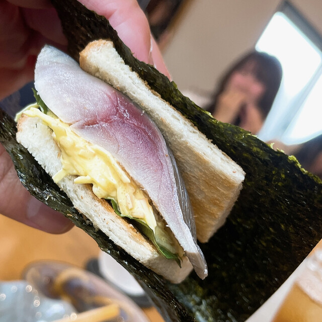 シメサバサンドのあとに茶碗蒸しをはさみ