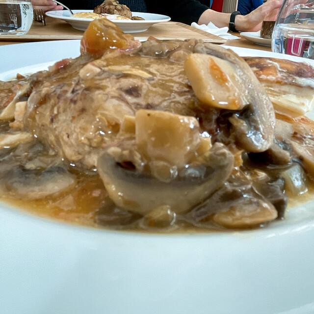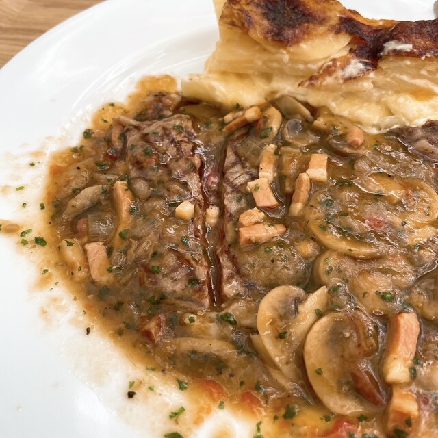 オヤジはサーモンパイを同行者はハンバーグを注文