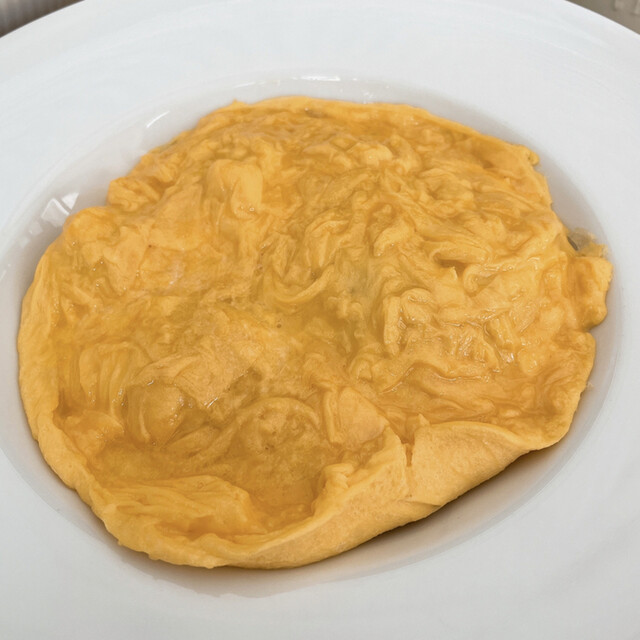 オムライスの玉子は上は半熟で下は固まりかけ