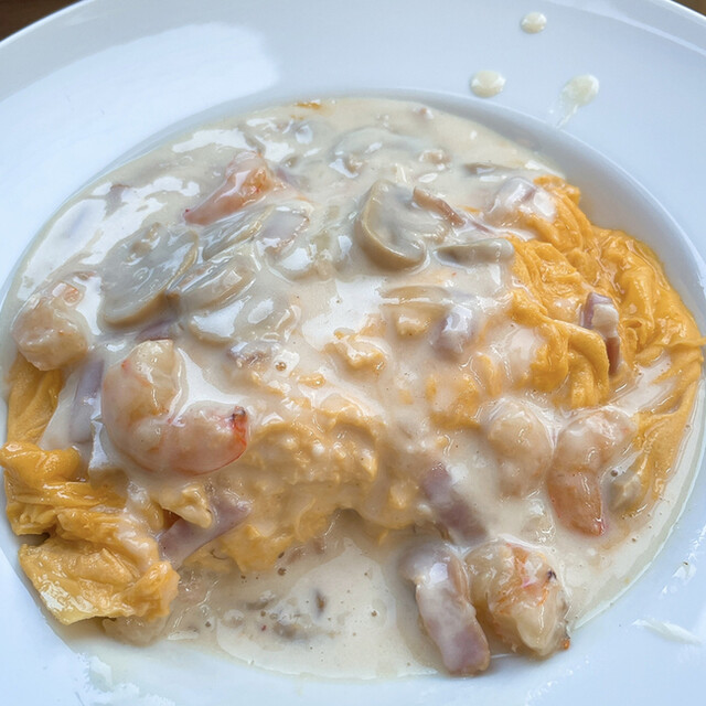 海老とマッシュルーム白ワインクリームソース