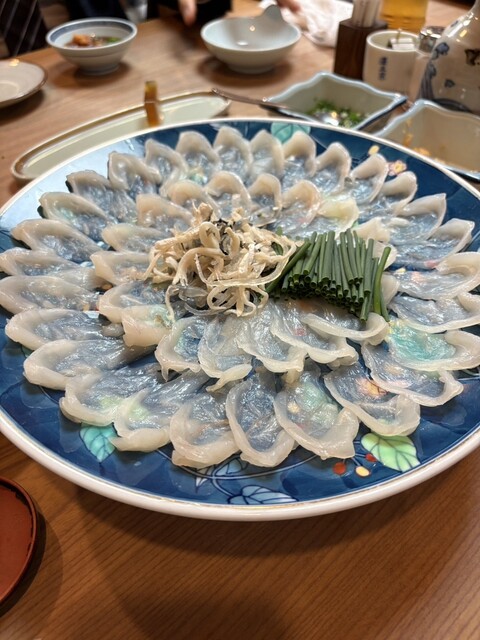 久しぶりの訪問。やっぱりこの時期ふぐは絶対です。予約必須のこちらのお店。コースでなくアラカルトでとらふぐがいただけるのが最高です。てっさは肉厚で弾力あり、白子もボリュームがありました。ふぐかわ、にこごり、てっちり、雑炊も食べましたが写真忘れるほど美味しかったです。