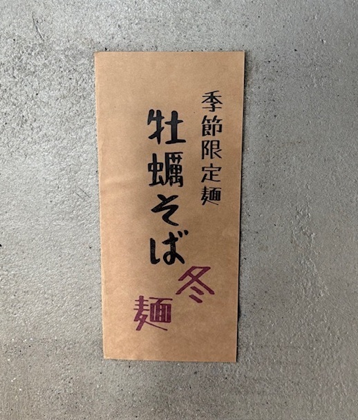 1月限定 牡蠣そば(大盛り不可) 1,300円。