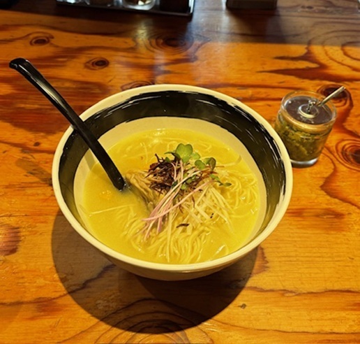 味変アイテムの柚子と青唐辛子のブレンドを入れると爽やかな辛さがいいカンジ。