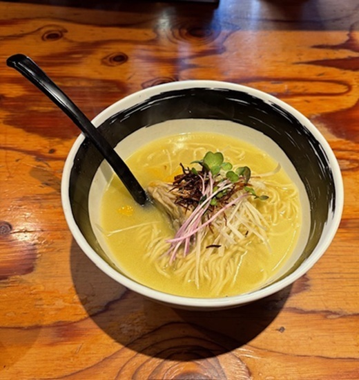 煮干しのすっきりした旨みに牡蠣の濃厚さを加え、飲み進めたくなる一杯に。
