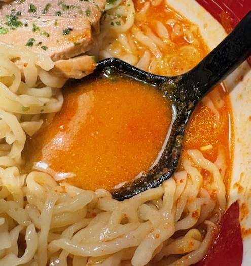 赤くなったスープは濃厚でピリ辛になってすごく美味しい!