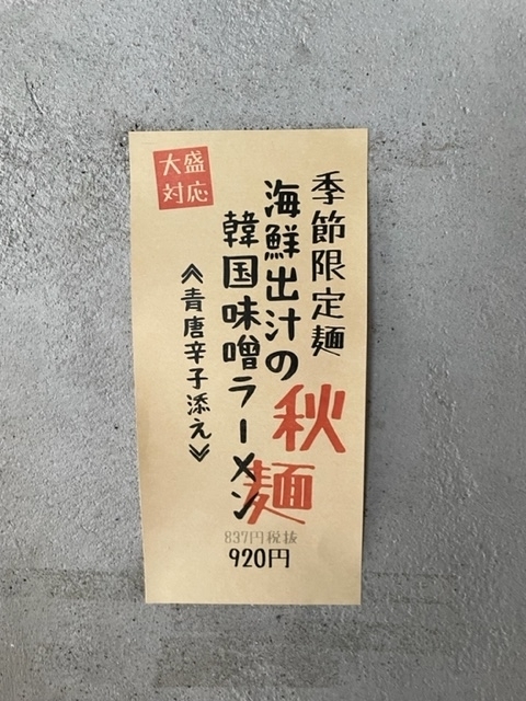 まだまだ暑い9月ですが、早くも浜虎の秋麺が出ました。