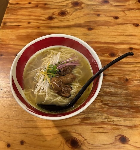 牡蠣の出汁と清湯スープをブレンドしたWスープにシンプルな塩ダレを合わせました。