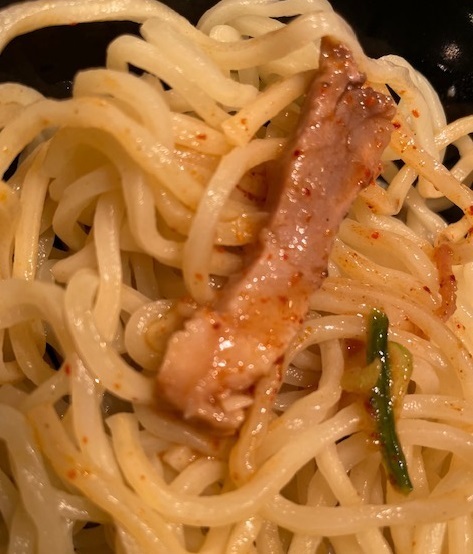 麺は将太くんの仰せのとおりで、柔らかめが苦手な人はっていう、柔らかめの極細の丸麺。