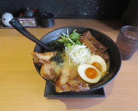 ラーメン 戸みら伊 横浜伊勢佐木町店@2021年1月16日(土)。着物屋が、京洗いを1着1980円でしてくれるというので、母の形見の着物と帯をたくさん持っていきました。約束の時間よりもすごく待たされたには、まあいいんだけど、着物の先生という人と担当者にいろいろ図られたり着せてもらったりして、最終的には着物と帯の直しで、計182100円の契約をさせられてしまいました。他の3枚の着物はウールだのポリエステルだのと貶されただけ。まあ、母の着物が生き返ればいいやということで自分を納得させましたが。そんな気持ちで、遅めのランチは、行ったことがなかったこちらへ。2017年2月1日オープン。上野に本店があるお店ですね。開店当時、この看板ではコンセプトがよくわからなくて、入店しようと思えなかったのです。キャッチ—じゃないというか、インパクトがないというか。券売機。店内はお洒落ですね。BGMはジャズ卓上。メニュー。お水のグラス。戸みら伊 全部のせらぁめん 1,100円。ランチサービス 大盛り無料(ライスか、どちらか選べます)麺カタメスープは鶏豚骨・醤油、まろやかでとても美味しいじゃないですか!臭みも全然ないし。大ボケでになってしまってorz中太麺は、大好きな浜虎の麺みたいで、めっちゃ美味しい!焼いたみたいな色の分厚い材木メンマ!これまためっちゃうま!白髪ネギ、水菜、ベビーリーフかな。野菜がたっぷりで嬉しい!炙りチャーシューはジューシーでめっちゃうま!今日の玉卵うま~ランチは無料の茹で玉子、赤塩をかけて。更に玉卵美味しいです。とても美味しかったです!もっと早くくればよかった。大陸系男子が頑張って接客していました。再訪します。翌日、着物の直しと洗いは、クーリングオフしようと決意しました。クーリングオフというのは頭を冷やすという意味もあるみたいです。けじめをつけて着物と向き合いたいです。
