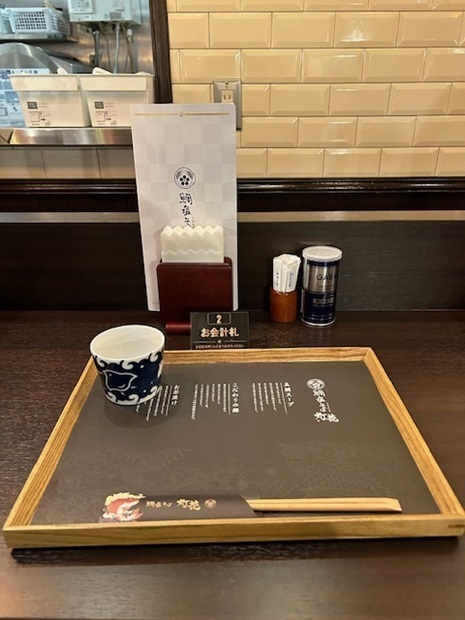 鯛塩そば灯花そごう横浜店@横浜 詳細版2023年11月30日(木)。→速報版からの詳細版です。おすすめセット。店舗横のマチ席で待ちます。休日はすごい列になるので、平日が狙い目ですね。けっこう待って入店です。卓上。メニューと調味料。こだわり。箸袋が素敵!ポットと冷茶。冷茶、美味しいです。カウンター下に棚があって、助かります。シックな雰囲気の店内です。メニュー。想像したよりもお高くなかったですが、わかりやすく大きな税込み価格で表示してほしいです。どこのお店でもそうだけれど、大きな税抜き表示って騙されている気がします(;^_^A口頭注文で、後払いでした。美しいビジュアルです鯛出汁のラーメンは過去の経験から、灯花は一度も訪問していませんでした。でも、こちらは鯛が苦手な方でも美味しいと聞いたので。【当店「鯛塩そば灯花」の宣伝と評判は、透き通った黄金スープは鯛のみを使用した鯛出汁スープ。喉に染み渡る真鯛の旨味、芳醇な香りが織りなす至福の真鯛出汁を堪能できる。】この宣伝文句に恥じない至高の美味しいスープ!鯛の生臭さを一切感じない素晴らしい技術ですね!もっと早く本店とか支店でいただけばよかったです。ストレート細麺は美しく整えられています。食すと、コシがあってとても美味しい!長ーい一本の穂先メンマもしっかりした食感で美味。チャーシューに載ったちょっと青ネギと小さなお花の麩も綺麗です。チャーシューも噛み応えがあっていいですね。今日の玉卵ご馳走様でした。接客も丁寧で好印象です。また平日に何度も訪問したいです!ラーメンデータベース