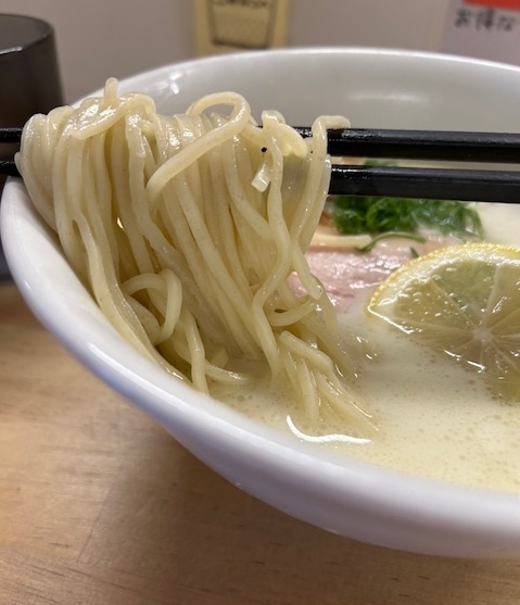 マイルドで、ややライトな鶏白湯スープは洋風な味わいで凄く美味しい!