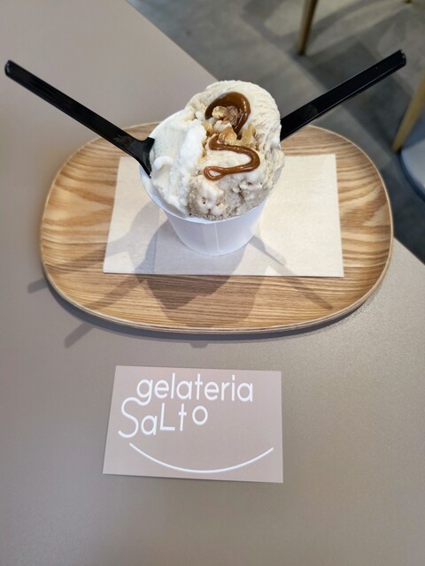 早速ジェラートをいただきます。キャラメルはくるみと、キャラメルソースのトッピングが。塩気もいいアクセントになっており美味しい〜!