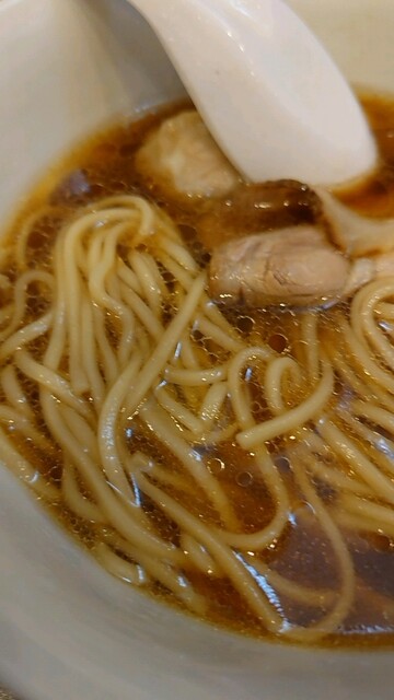 スープは鶏のガラと肉の旨味で濃厚なスープです。以前より出汁の旨味が増してます。カエシの醤油も濃過ぎず、甘くてダシを引き立ててました。