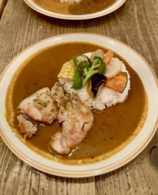 さほど待たずに出てきたのはライスの上に彩りある野菜が乗り大きめのチキンがドンっと乗った美味しそうな一皿。ハーブチキンは柔らかくて香ばしくてボリュームあっておいしいし、カレーは相変わらず甘みと辛味が同居したような美味しいヤツだし、8年ぶりでも変わらぬ美味しさに嬉しくなりました。安定した人気が確認できた久々の利用、良かったですよ。駅近のオススメのカレー屋さんです。