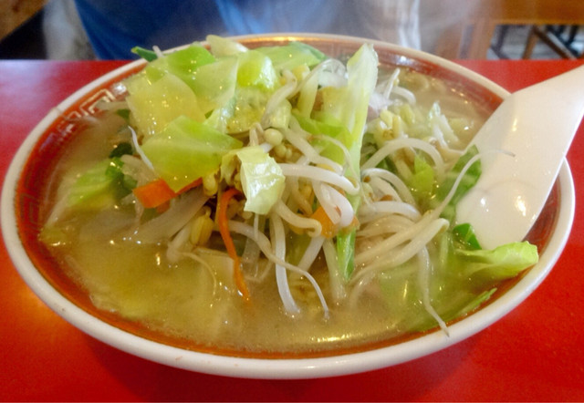タンメンは野菜たっぷりで優しい塩味で、テッパンのおいしさ。