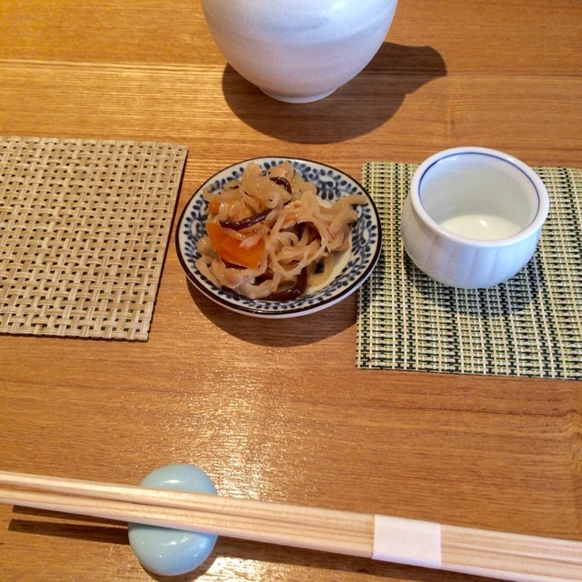カウンターに座ってビールをチビチビやってましたが、最初のうちはとにかく忙しそうで「これからどうなっちゃうのよ?」的な不安があったものの、「厨房が落ち着くまでこれ食べて待ってて〜」と何と漬け物をサービスで出して下さり、途中からはお酒も料理もスムーズに提供されてひと安心。ちょっとしたサービスが僕らの居心地を飛躍的に良くしてくれ、一気に楽しくなりました。