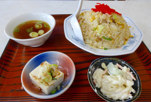 チャーハンは良い具合に焦げ目がついて味もしっかりしていてパラパラ系の美味しいもの。