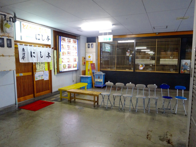 静岡県の沼津港で日曜は朝6時から営業しているこちら。その日曜日の朝5時10分に自宅を出発し6時15分頃着くと、市場関係の常連さんと思われる人や明らかに観光の8人くらいの若者グループもいて既に中は7割くらいの入りです。