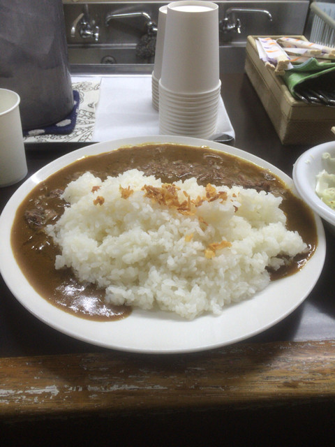 そして追っかけ出て来たカレーは、辛さは中辛、深〜いコクがあり、ホロホロの牛スジがほんのり甘く、おいっしいです。マジでど真ん中、私にとっては絶品。