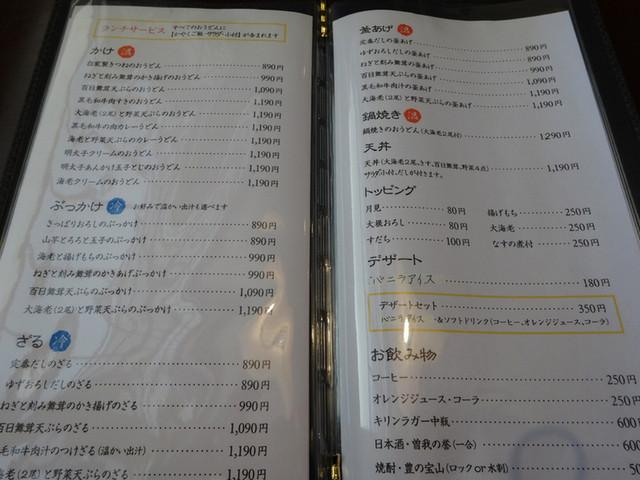 私は黒毛和牛肉汁の釜揚げうどん、連れは百日舞茸の天ぷらうどんを注文。
