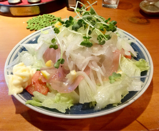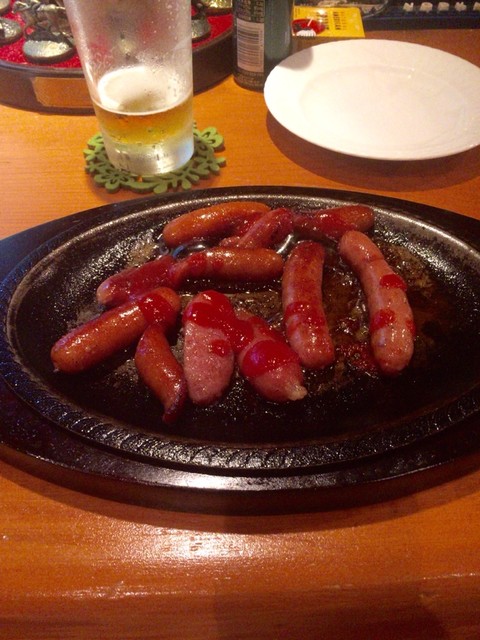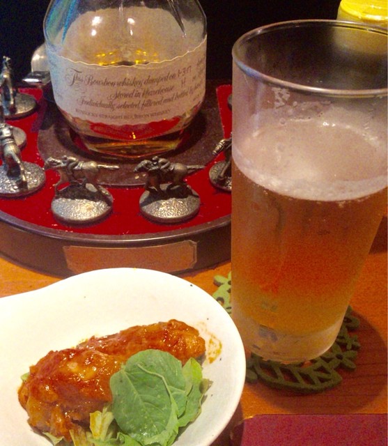 先々週に来たばかりなのにまた来ちゃいました。この日は友人4人で。付き出しはプルコギ風焼肉、これだけでもうビールが進みます~(^^)。