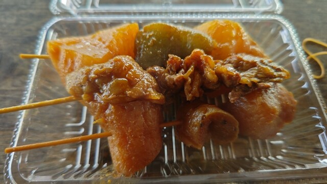 『きわみ食品』さんでは犬鳴山こんにゃくの味噌煮とやわらかスジ肉味噌煮。