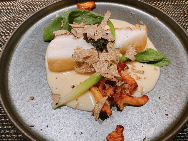 長崎産アラ フランス産ジロール茸 イタリア産サマートリュフとキャビア シャンパンソース添え