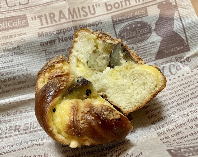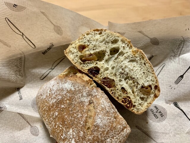 ヘビロテ商品で、アールグレイの風味豊かなセミハードな生地に、いちじくをたっぷり練り込んだパン。