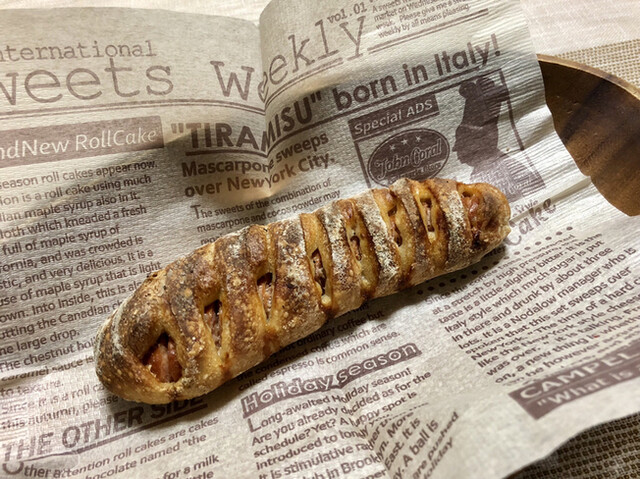 低温長時間発酵のバゲット生地に、辛口ソーセージを包み込んだパン。