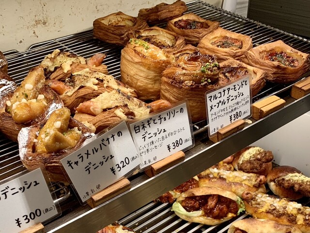 デニッシュ生地に、自家製カスタードクリームがたっぷり入ったパンで、底にはキャラメルバナナ、天面はキャラメリゼされており、キャラメルの苦味とバナナの甘味が見事にマッチング!