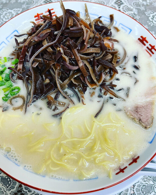 数年ぶりの訪問。ここのクリーミーな豚骨ラーメンとカレー味替玉に衝撃を受けすぎて、福岡出張を生み出したこのタイミングで逃さず訪問。いつの間にやら食べログ点数も4点台!メッチャ混んでるかと思いましたが、運良く並ばずに入れました。キクラゲラーメンとカレー味替玉をと思ったのですが、連食中だったので、カレールゥのみ追加しました。相変わらずの極細麺に大量キクラゲとこのスープ、ええね。カレールゥ入れた後のカレー豚骨ラーメン、最高!