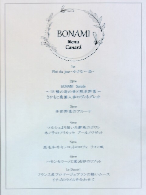 濃いソースやバター等が一般的なフレンチより少なく、でも味が薄いわけではなく…五感で楽しめるしみじみ味わい深い構成でした。