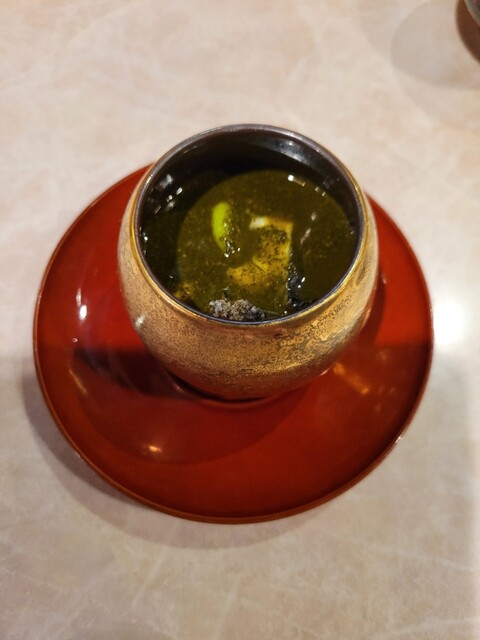 そして一品目のお摘みは冷製茶碗蒸し。相変わらずの仕上がりで、テンション上がります。