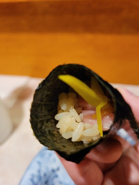 で、その後握り寿司に移行しましたが、なんと鮪が出てきました・・・これまで一度も使わなかったはずですが、リクエストが多いせいか、利益度外視で提供を始めたのでしょう。