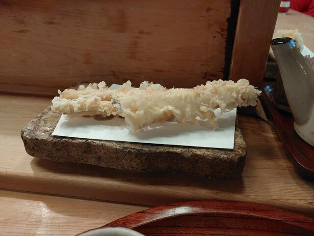 海老、キス、しいたけ海老真丈、銀杏、穴子、そして天丼か天茶
