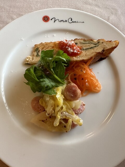 この日注文したのはマンジャーレセットで、パスタは牡蠣と豊栄野菜のクリームソース、ピッツァは新潟お肉屋さんのピッツァ。