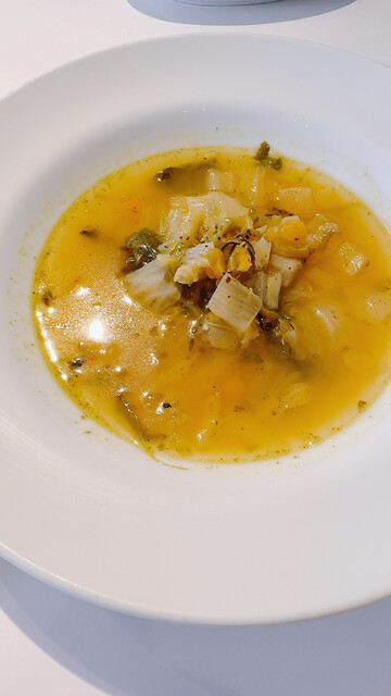 本日のパスタを注文。カボチャのスープが具沢山でキラキラしてる!