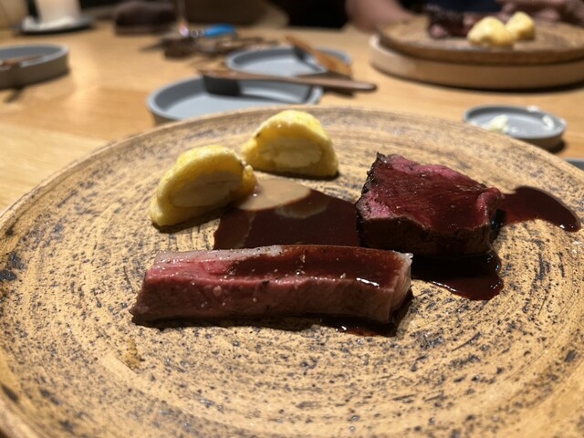 そしてお肉料理は、鹿肉。北海道の鹿肉との説明をうけ食べてみると、こちらもまた美味!