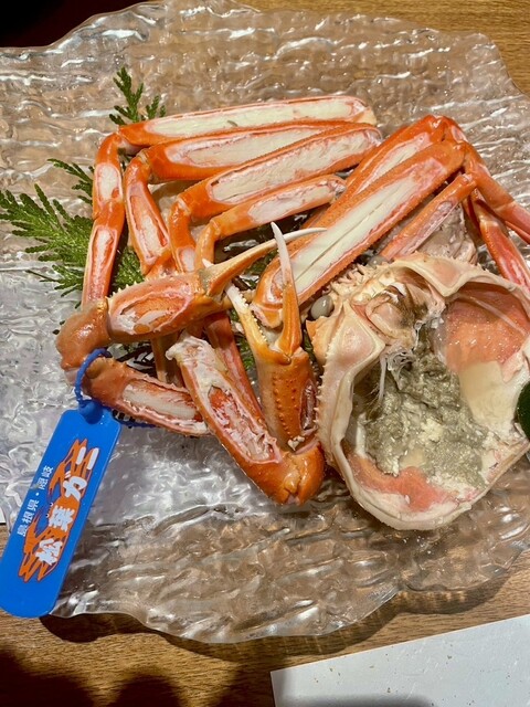 松葉かにの旬な季節でしたのでタグ付きの松葉かにを堪能させていただきました〜刺身、茹で、焼き、かに味噌どれも美味しくいただきました♪