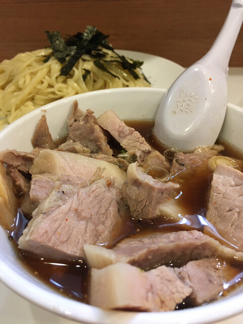 つけツユの甘い酸味とゴロッとしたチャーシューの肉塊への征服感で啜り進む。
