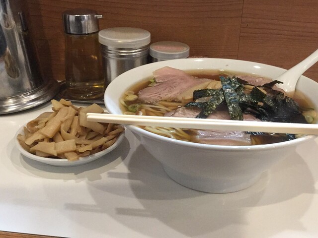 チャーシューらぁめん(大盛 250g)、メンマ、のり、ネギ