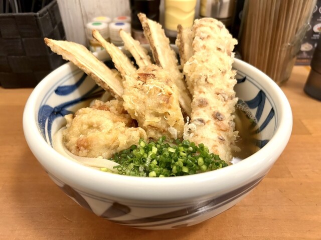 とりちくわ天うどん ごぼう天。麺量:特大で。