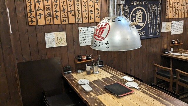 大森駅から徒歩5分の場所にある「大森ホルモン まるみち」は、新鮮なホルモンと上質な焼肉を楽しめるお店とのことでやってきました。店内は清潔感があり、レトロな雰囲気で落ち着いた空間が広がっています。