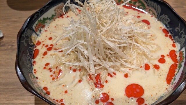 最後に、坦々冷麺とマロンアイスをいただきました。坦々冷麺は、ピリ辛のスープとコシのある麺が絶妙なバランス。マロンアイスは、濃厚な栗の味わいとその粒入り、滑らかな口当たりで、食後のデザートにぴったりです。