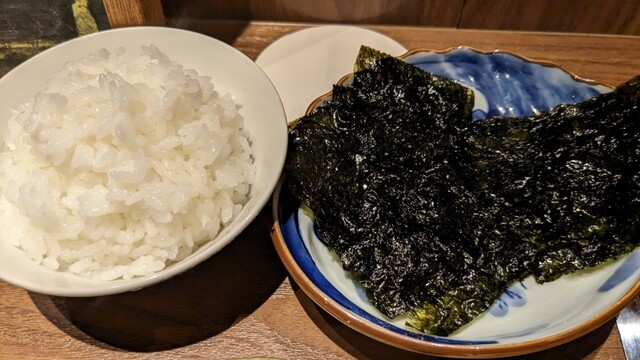 まずはご飯と韓国のり、キムチ盛り合わせで前菜を楽しみます。パリッとした海苔と香ばしいごま油の風味が食欲をそそり、キムチは辛すぎず、野菜の甘みもしっかり感じられる逸品でした。肉と海苔ご飯はとにかく相性は最高です!