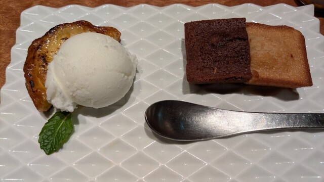 野菜串のミニトマトは、焼き鳥の合間の箸休めにぴったりです。ミニ地鶏すきは、鶏肉の旨味が凝縮された、贅沢な一品。締めくくりの季節の食材と鶏出汁の土鍋ご飯、卵かけご飯は、優しい味わいで、心も体も温まります。デザートのファーブルトンとアイス、フィナンシェは、上品な甘さで、コースの余韻を締めくくります。