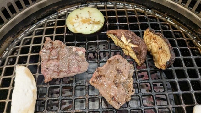 9種の肉盛りはどれも絶品。特に印象に残ったのは「ヒレ」で、赤身とは思えないほど柔らかく、脂のバランスも絶妙でした。焼きしゃぶは薄切り肉を軽く火を通して味わう贅沢な一品。カイノミやリブキャップも肉本来の旨味があり、焼き野菜と一緒に食べることでさらに美味しさが引き立ちました。